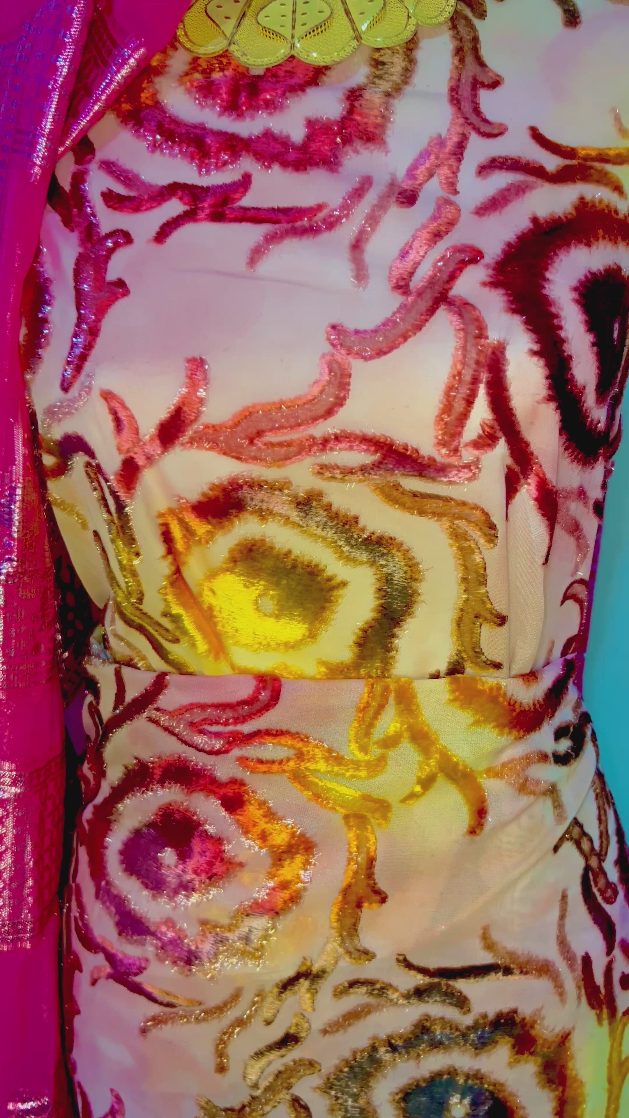 - Shash / Scarf: Coordinated chiffon with gold detailing